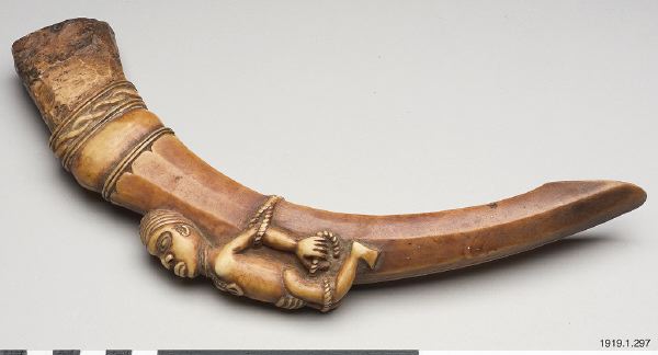 Skulpturen är även i sig intressant, eftersom den har stora likheter i form och utförande med flera exemplar spiror i elfenben (också de från Mayombe-regionen) i museet i Tervurens samlingar (t. ex. EO.0.0.38571, EO.0.0.38570 och EO.0.0.43708). Dessa spiror delar motivet (som finns på denna skulptur) med den bundna slaven/fången men har dessutom en övre del som föreställer en hövding med sin munkwisa-rot i mungipan. Detta är ett vanligt förekommande tema i regionen (på spiror och andra prestigeföremål i trä och elfenben), vilket illustrerar hövdingens absoluta makt att ta (och ge) människors liv (MacGaffey 2000:137ff, not 3, s.249).