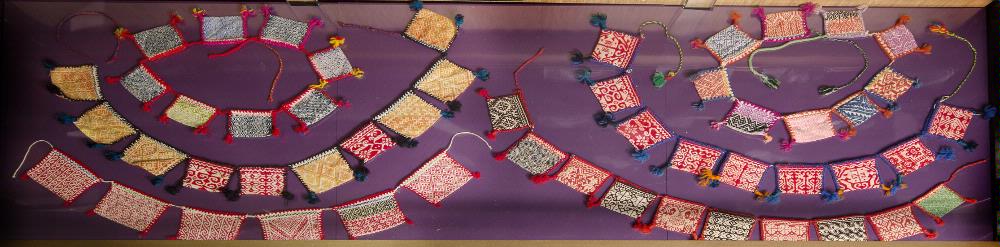 Systrarna Bodil Christensen och Helga Larsen, från Danmark och verksamma i Mexiko, hade mycket god kontakt med Etnografiska museet, inte minst under museets Mexiko-expeditioner på 1930-talet. De bidrog med etnografiska samlingar med mycket god information kring föremålen och publicerade artiklar i Etnografiska museets internationella tidskrift Ethnos. Systrarna Bodil Christensen och Helga Larsen är exempel på att kvinnor inte fått berättigad uppmärksamhet i museets historia. Textilierna kommer från Bodil Chistensens samling 1937.