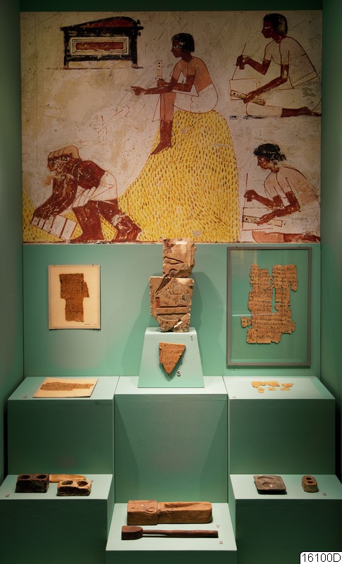 The signs epitomised strong conservatism and the Egyptians retained their hieroglyphs for over three thousand years. They wrote on everything; on walls, papyrus and shards of ceramic and stone (ostraca) but also on furniture, coffins and statues.