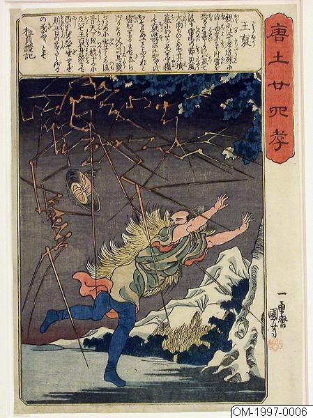 Titel: Ôhô (= Ôsui; kin. Wang Ngai) Ôhô bland blixtrar på vägen till sin moders grav för att lugna hennes själ, eftersom hon varit rädd för åskstormar när hon levde.