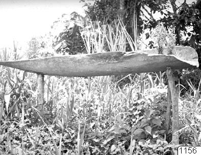 - Kasserad kanot på stolpar som "trädgård" för diverse växter. gammalt bruk hos Chocó. Kliché; 001261. Wassén: Notes on Southern Groups of Chocó Indians etc. (Etn. Studier,1, Gbg. 1935), fig .6. Ibid. i "Jorden Runt", febr. 1936, Sthlm. sid. 90. Först. till museet. (katalogkort).