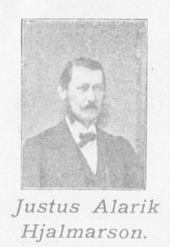 Justus Adalric Hjalmarsson, född 2 februari 1823, i Rödbo, Kungälv (familysearch), död 1876 (även 1975 förekommer som årtal), apotekare (familysearch). Reste efter avlagd apotekareexamen 1847 till S:t Thomas i Västindien, där han till en början hade anställning på ett apotek. Sedan anlade han på samma plats en mindre kemisk-teknisk fabrik, vilken tycks ha givit honom en skäligen god inkomst.