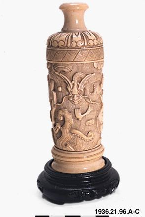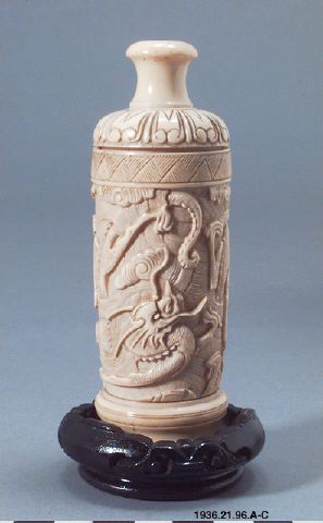 - Vas av elfenben. Sidan dekorerad med två slingrande drakar i relief.
