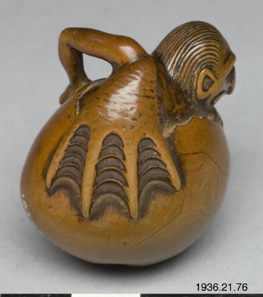 Netsuke troligtvis föreställande en tengu (mytologiskt väsen).