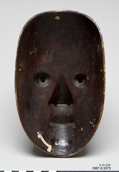 Skådespelarmask, lackerat trä, målad. Kyoto, Japan. Onna masugami-typ.