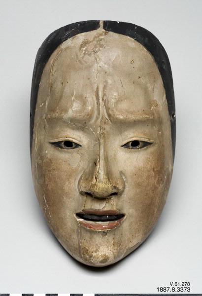 Skådespelarmask, lackerat trä, målad. Kyoto, Japan. Onna masugami-typ.