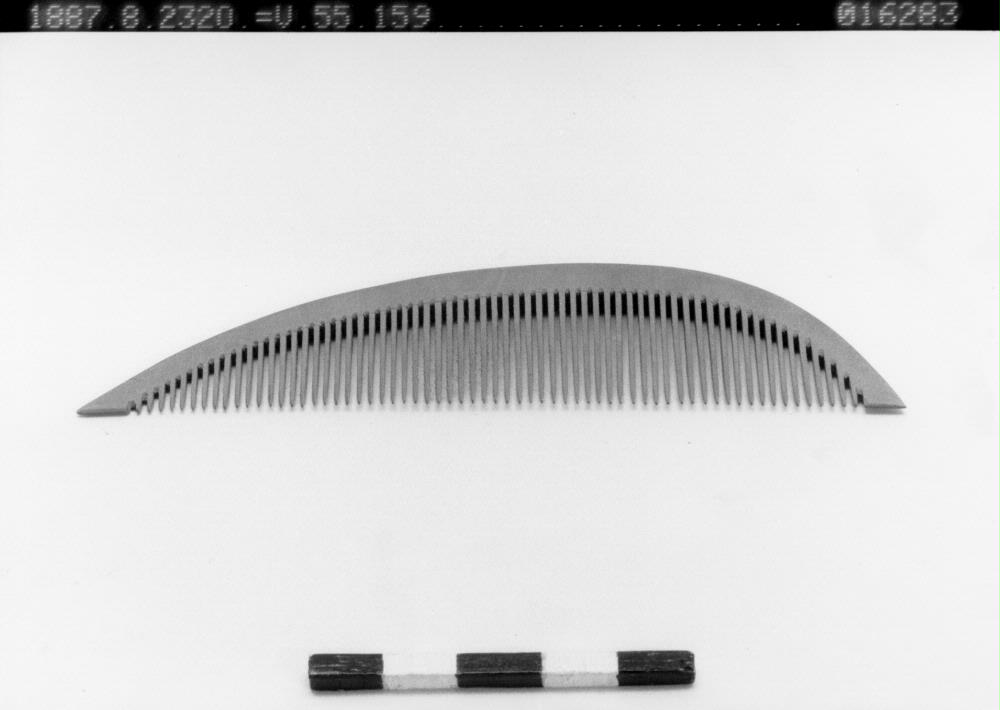 Kam, något asymmetrisk. De traditionella kammarna i Japan är både funktionella och vackra, då vissa av dem användes att fästa upp håret med. Från 1200-talet och fram till 1500-talet gjordes guldlackerade och med pärlemor dekorerade kammar. Sådana fortsatte man att tillverka under Edo-perioden (1600-1868) som blev en period av mycket arbetade håruppsättningar (från cirka 1760-talet), vilket ofta tydligt kan ses på träsnitten från denna epok. Under Edo-perioden används många olika material beroende på klass, ålder och smak, t ex bambu, trä, metall, sköldpaddsskal och elfenben. I en del fall gjordes hela uppsättningar med utsökt utförda mönster i lack med motiv av det som den japanska konsthantverkaren gärna använde sig av, djur och blommor och stiliserade mönster.