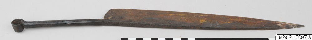 Sax av järn, i två delar. I änden på B-föremålet sitter en plugg av trä. (AA)