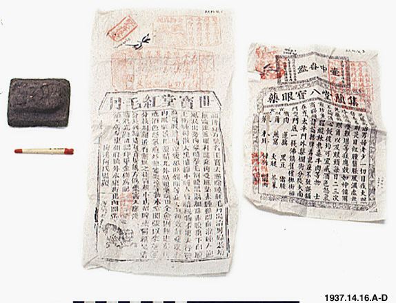 Enligt kataloguppgift en kaka av organiskt material samt till denna en liten stav eller pensel förvarad i ett fodral. Ögonmedicin.