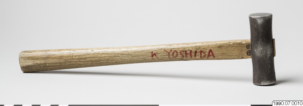 - Hammare använd vid byggandet av museets andra tehus. Europeisk modell. Inskription med tuschpenna: "K. Yoshida" samt tre karaktärer på skaftets ände.