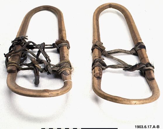 Snöskor av trä med skinnremsor, enligt katalogen "...ungt mullbärsträd...".