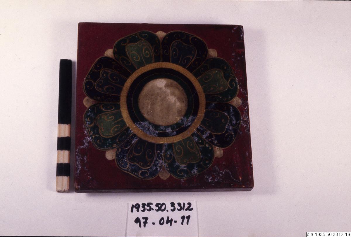 På foto i HBE har mandalan fyra ben. Dessa saknas i nuvarande skick. Mandalan som är helt kvadratisk, kan ursprungligen ha varit placerad på en cirkulär avsats, och den del som beskrivits ovan skulle då utgöra det kvadratiska mittpartiet. På foto i HBE finns små skålar på avsatserna. På den understa avsatserna står skålar utan fot, på den andra avsatsen nerifrån står skålar på fot, på tredje avsatsen står lite större skålar utan fot, på fjärde avsatsen står lite större skålar på fot. Alla dessa skålar saknas i nuvarande skick. (AA)