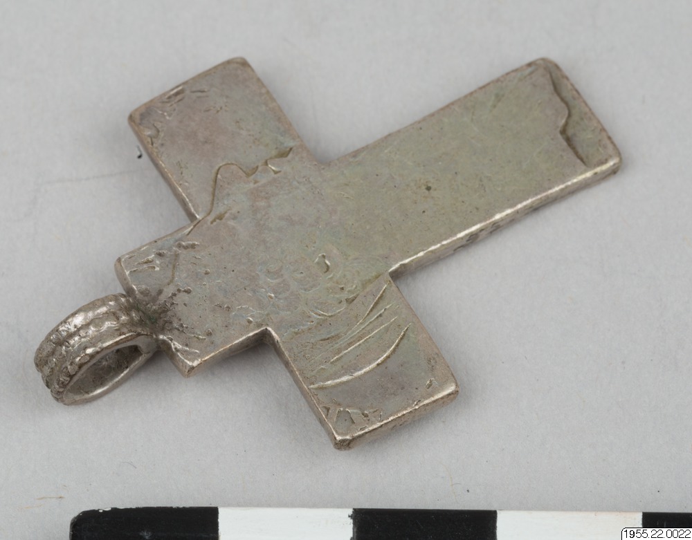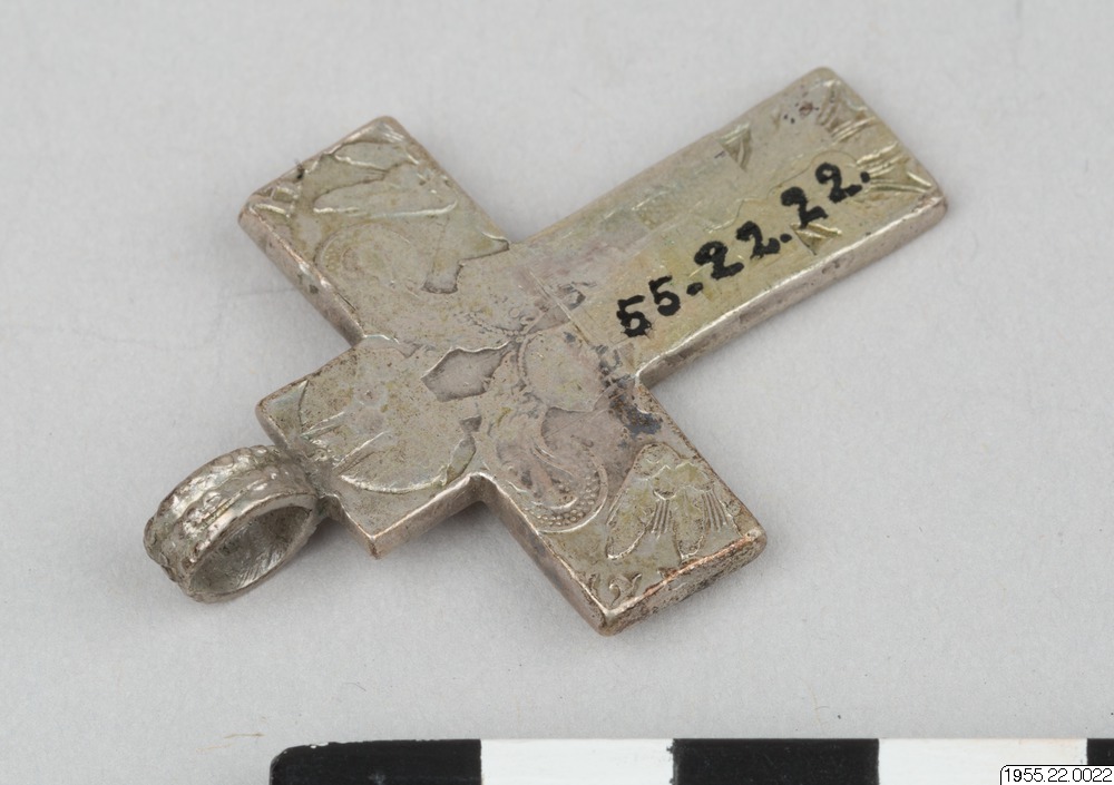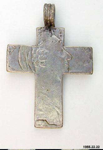 Det är inte ovanligt att mynten används som material för tillverkning av smycken av olika slag. I samlingen finns ett helt mynt, 1955.22.29. För kors i smyckesform se även 1955.22.21. (HTB)