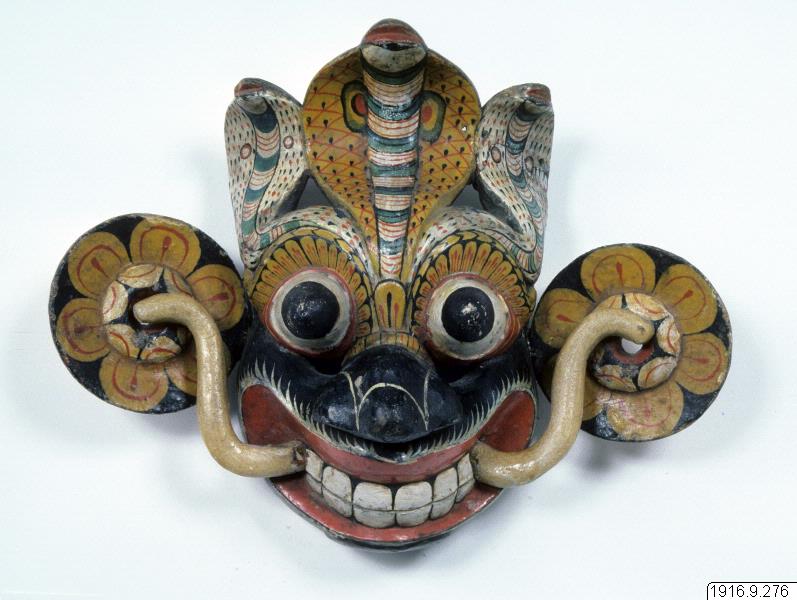 - Svart, ögonbryn och kobran i mitten gula. De vid sidorna vitgrå me gröna ringar.. Höjd: 26 cm. Bredd: 35 cm.