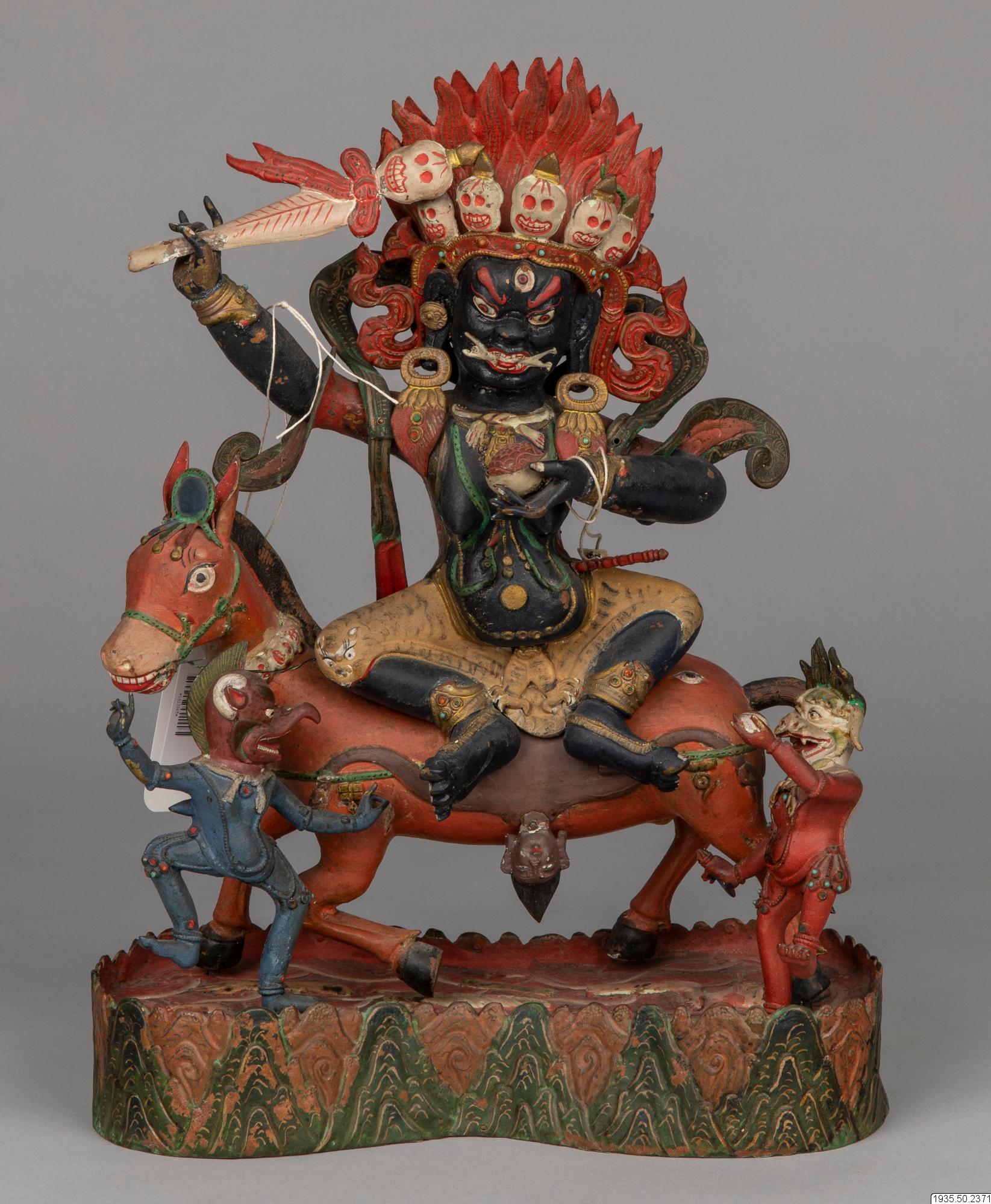 Shrî Devî, tib. dpal ldan lha mo, "Den ärorika gudinnan", med sina följeslagare Makaravaktrâ och Simhavaktrâ.