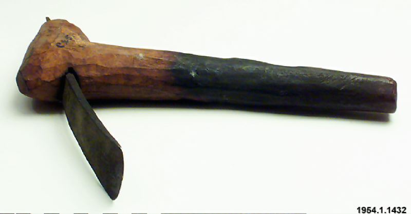 - Yxa med snidat träskaft, "tväryxa" enligt generalkatalogen. (HTB)