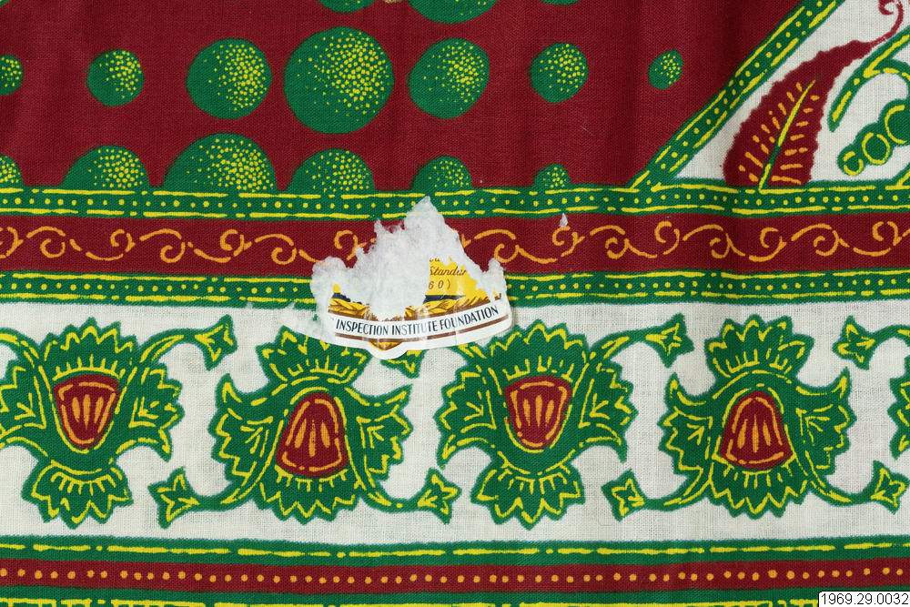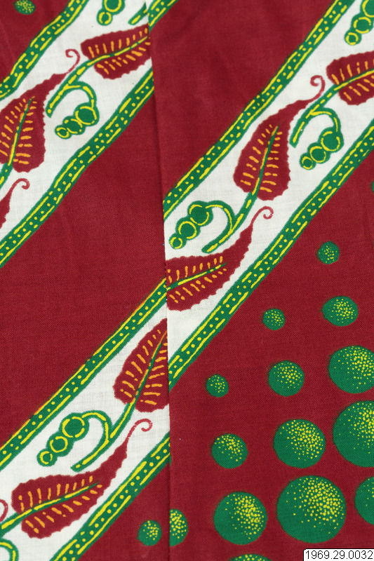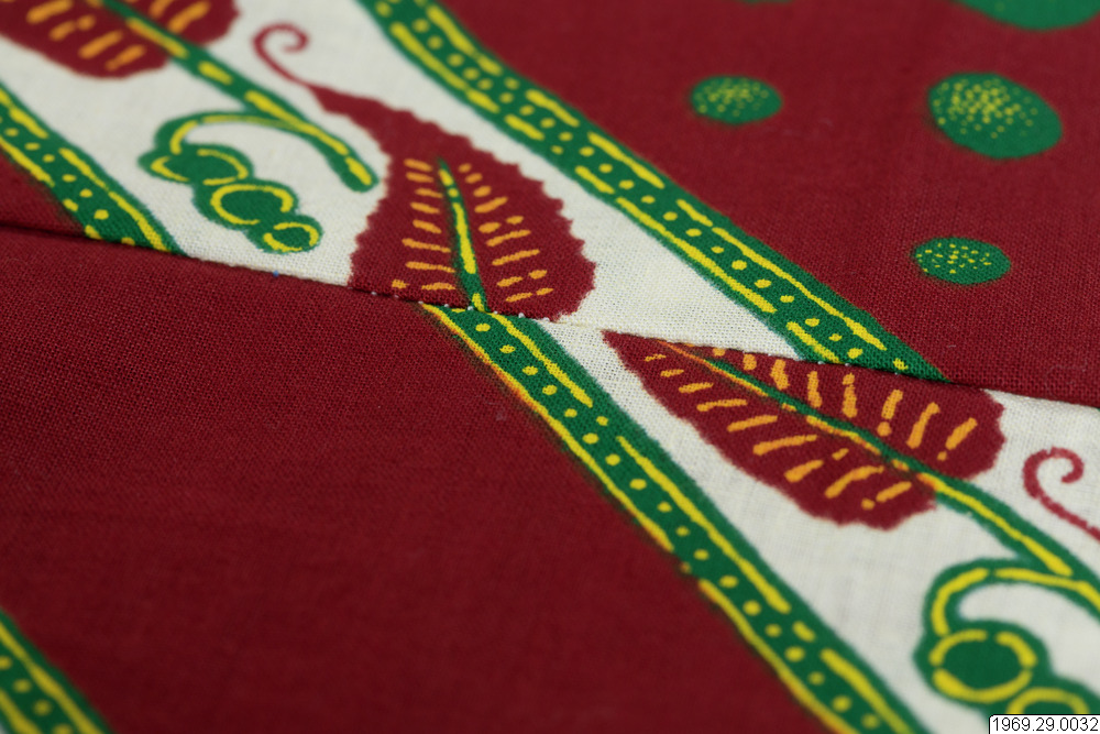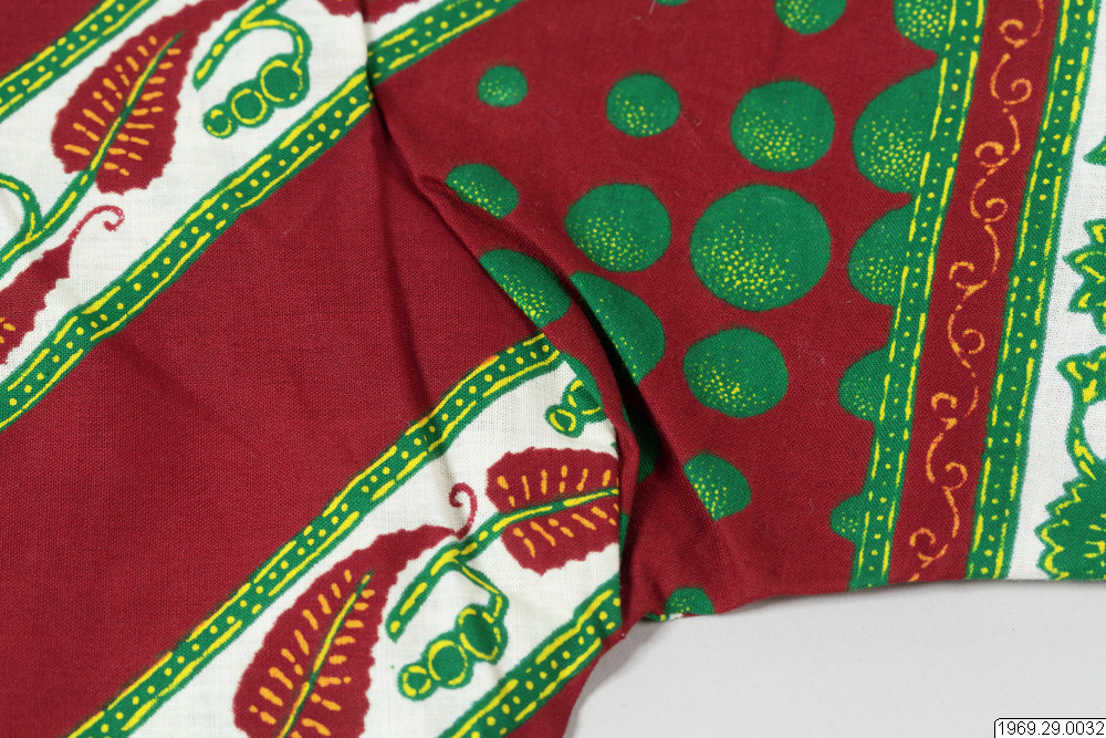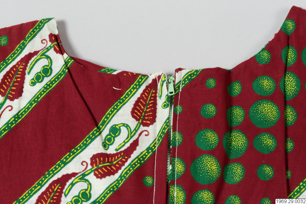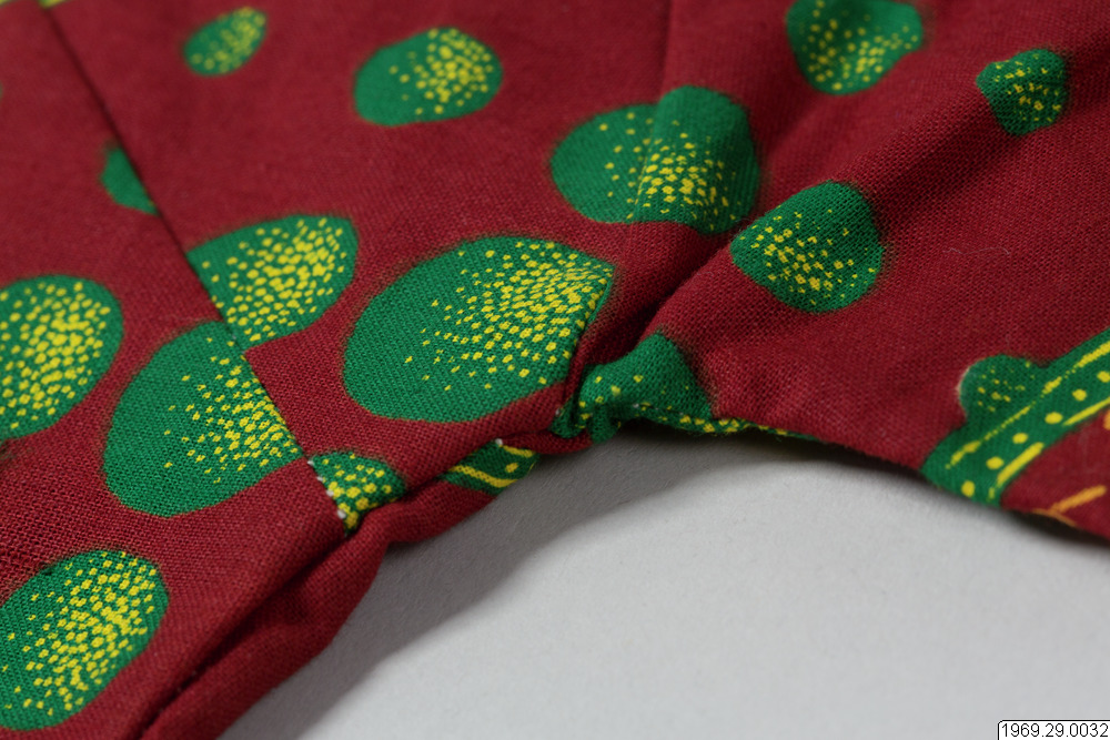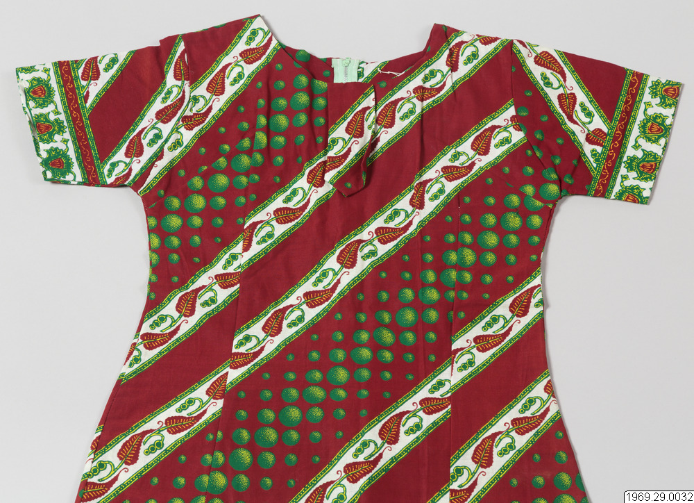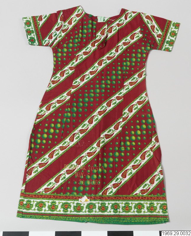 - Enligt generalkatalogen: Klänning, av chiteng-mönstrat tyg: "Hembros two tone fast colour Java print". Inköpt i Kasama. Längd: 190cm.