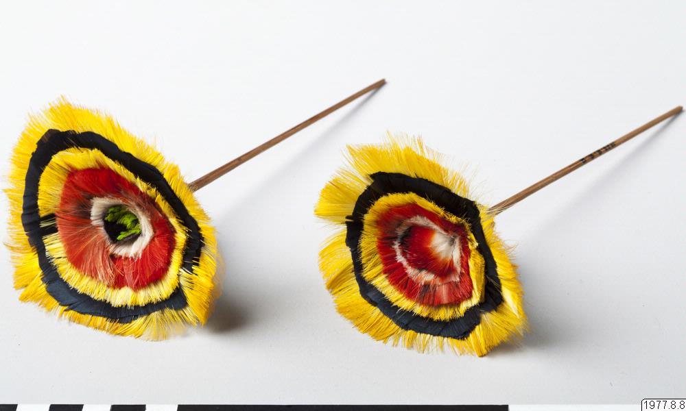 - Öron- och halsprydnader från karajá-indianerna (caraja) och jíbaro (shuar) i Mato Grosso och Ecuador.