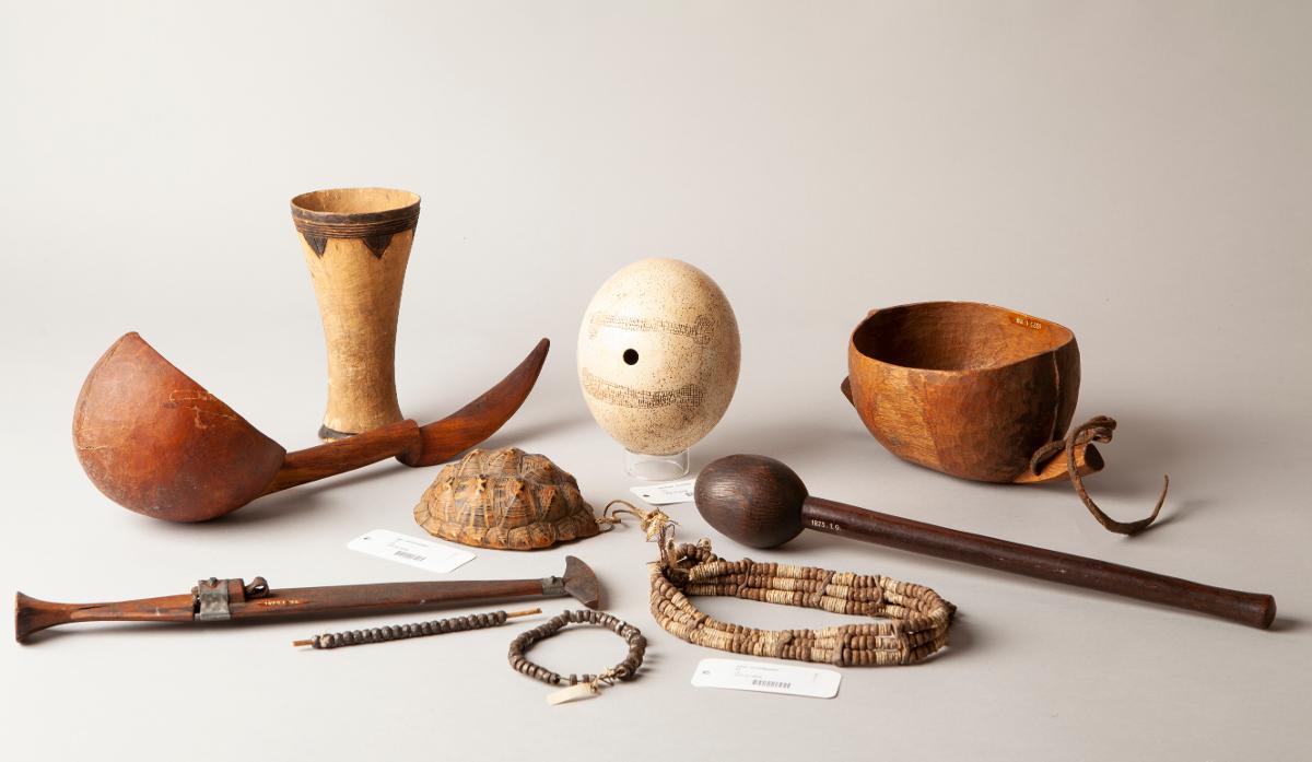 Köksredskap; kalebassflaska, dryckeskärl, slevar, skedar, matkärl, mattråg, strutsägg.