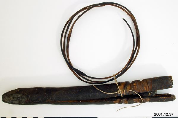 - Elddon av trä och rotting. Funkar som så att torrt gräs sätts fast i springan på trästycket sedan drar man rottingen fram och tillbaks till friktionen gör gräset så varmt att det börjar glöda. När det väl glöder blåser man på gräset till det antänds.