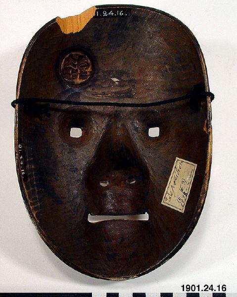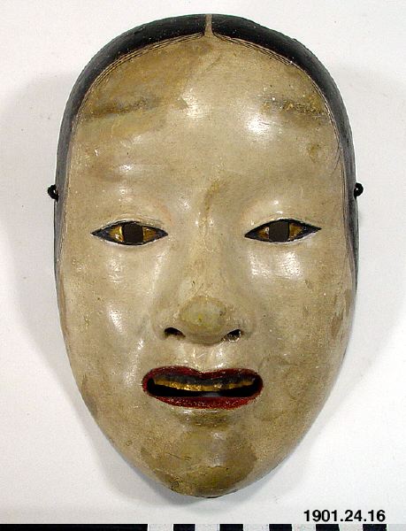 Mask för rolltypen Deigan. Masken representerar en mogen kvinna som bär inom sig frön av övernaturlig transformation, samtidigt som den signalerar en demonisk ande som snart kommer att manifestera sig. Källa: https://www.metmuseum.org/art/collection/search/812659