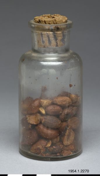 - Jordnötter utan ytterskal istoppade i en glasburk.