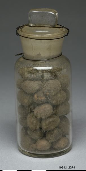- Kaffebär. Varje bär innehåller två bönor. Istoppade i en glasburk.