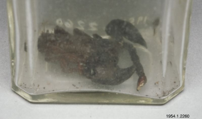 - Liten skorpion nedstoppad i glasburk.