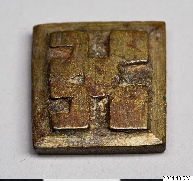 - Guldvikt. (Enligt generalkatalogen). Fyrkantig. Mönster i relief på ena sidan.
