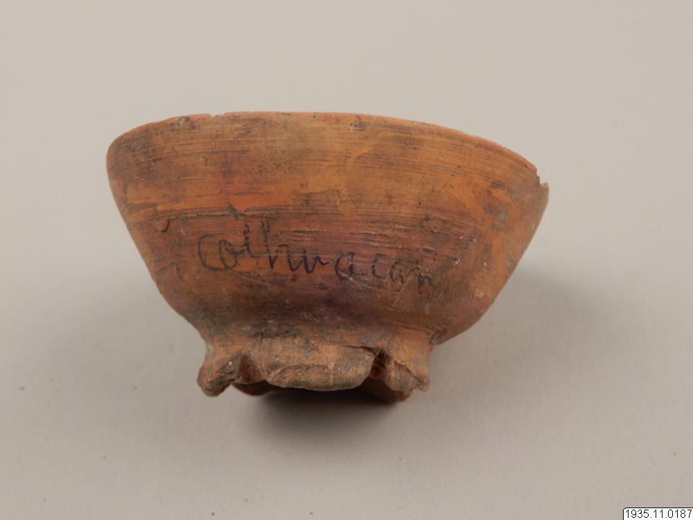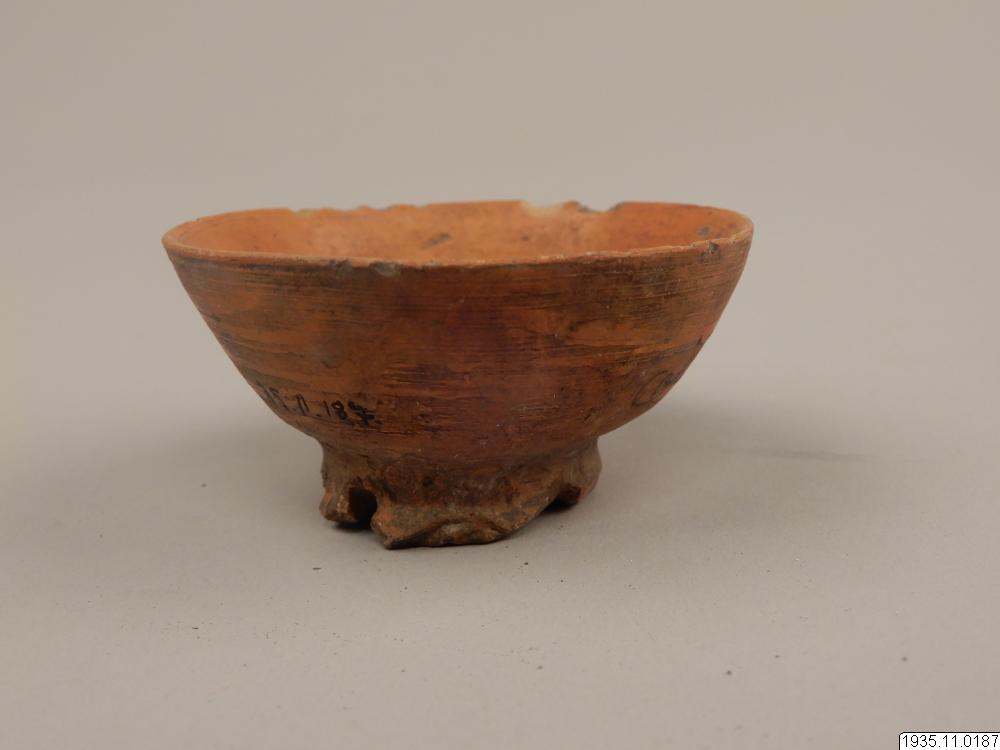 - Lerkärl. Konisk ringfot, genombruten på 5 ställen, till liten skål, som antagligen använts vid spinning som stöd för sländan. Foten söndrig. Diam. 6,4, h. 3,1 cm.