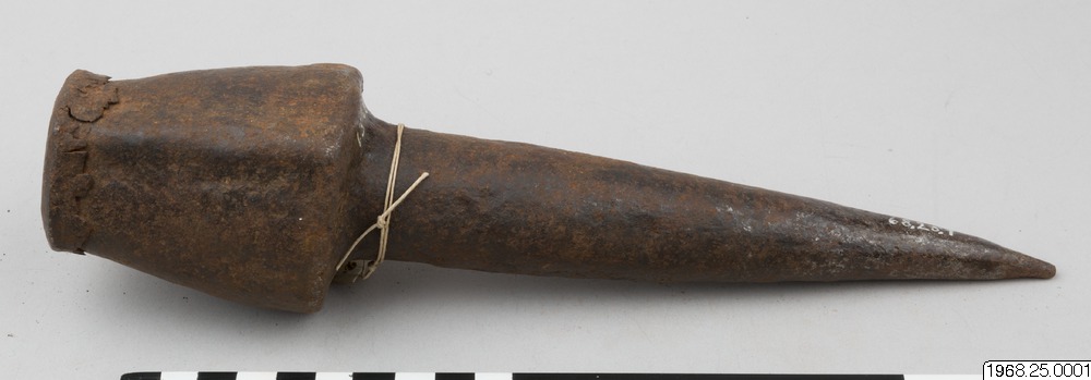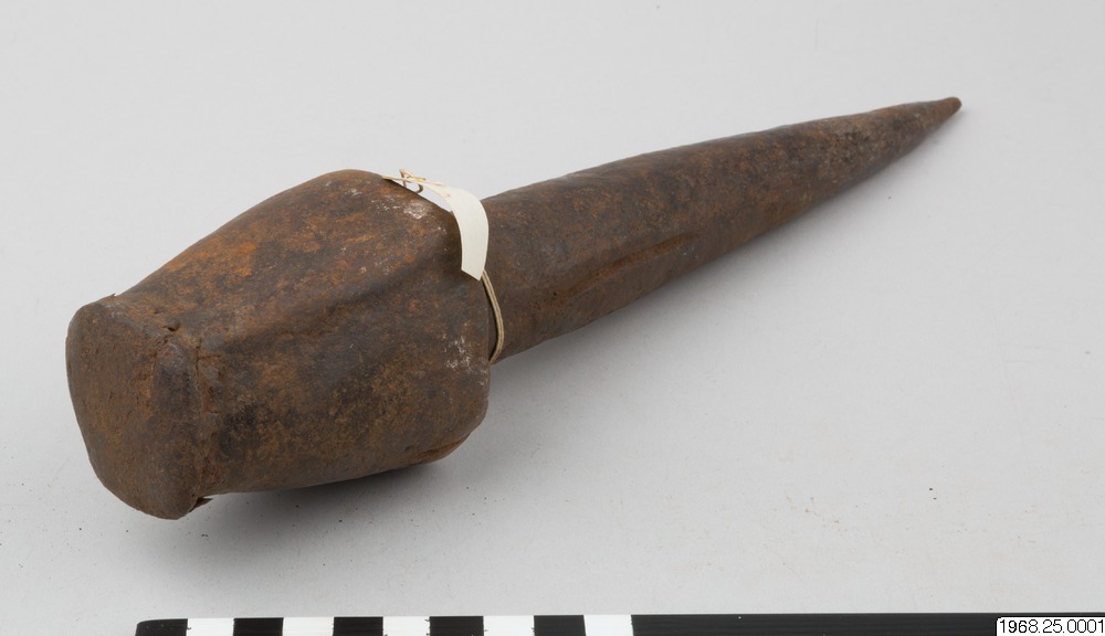- Mynt av järn. Stort huvud och spetsigt skaft. Kan även användas som smideshammare.