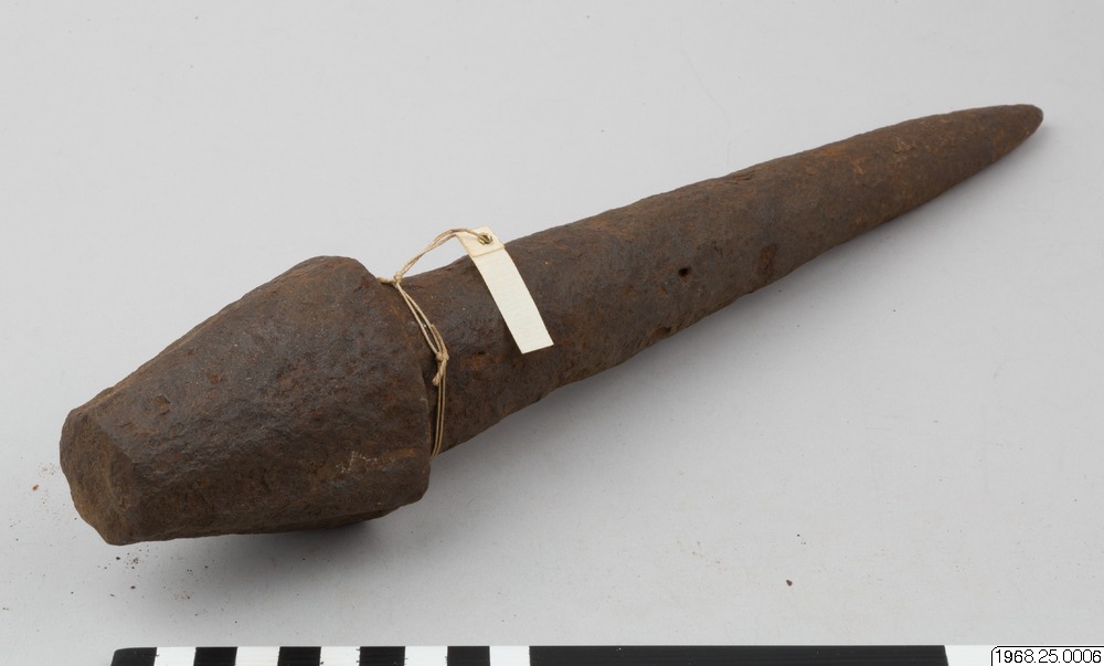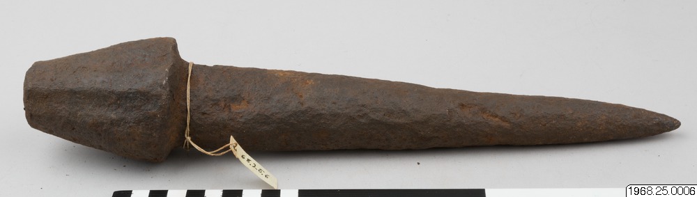 - Mynt av järn. Stort huvud och spetsigt skaft. Kan även användas som smideshammare.