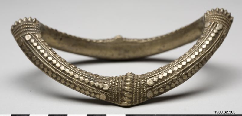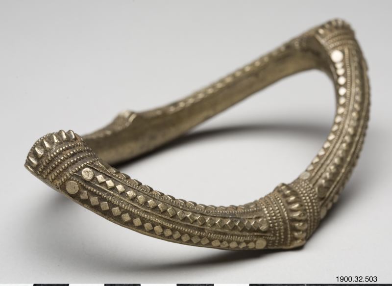- Fotring i mässing med gjuten dekor. Båtformat böjd.
