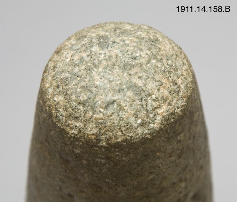 - Pistillen har något konisk form, bäda ändarna är rundade. De är bättre arbetade än morteln. Används för malning av ekollon eller medicin.