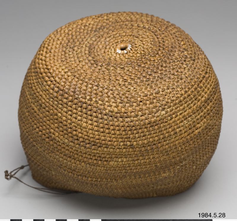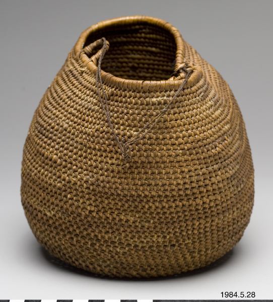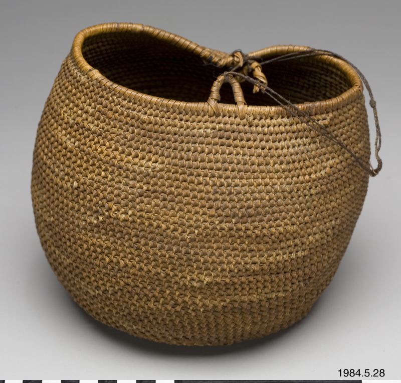 - Korg flätad i spiralteknink av växtfiber, rot?
