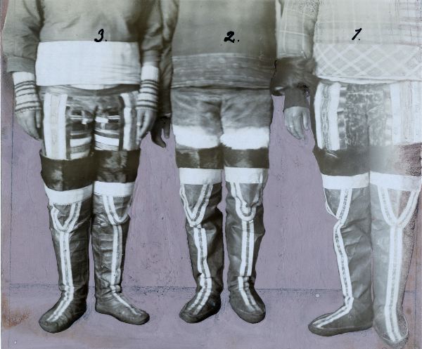No.3. Begagnas blott i Sydgrönland och där endast vid utstedena. Dessa byxor anses av danskarna oanständiga- följden blev- de blev omoderna. Byxor av renskinn.