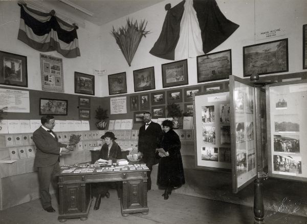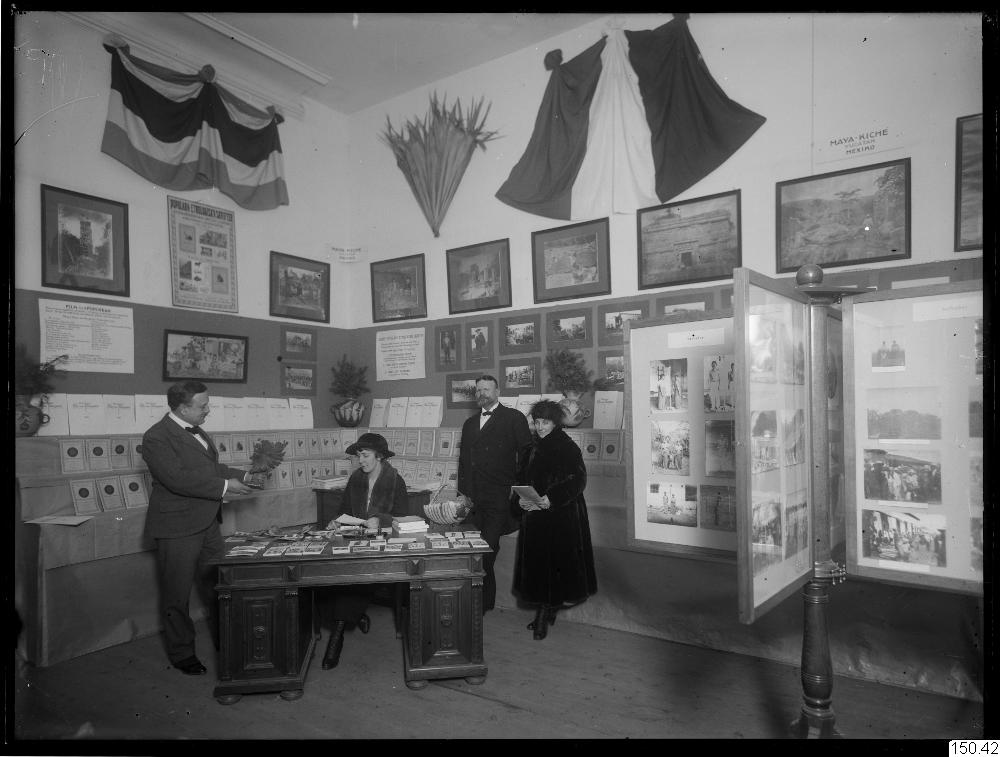 1926. Bok- och vykorts-försäljningen. Stockholm. Vallingatan 2. Riksmuseets etnografiska avd:s utställning 1920. Foto: Oscar Ellquist, Sthlm.