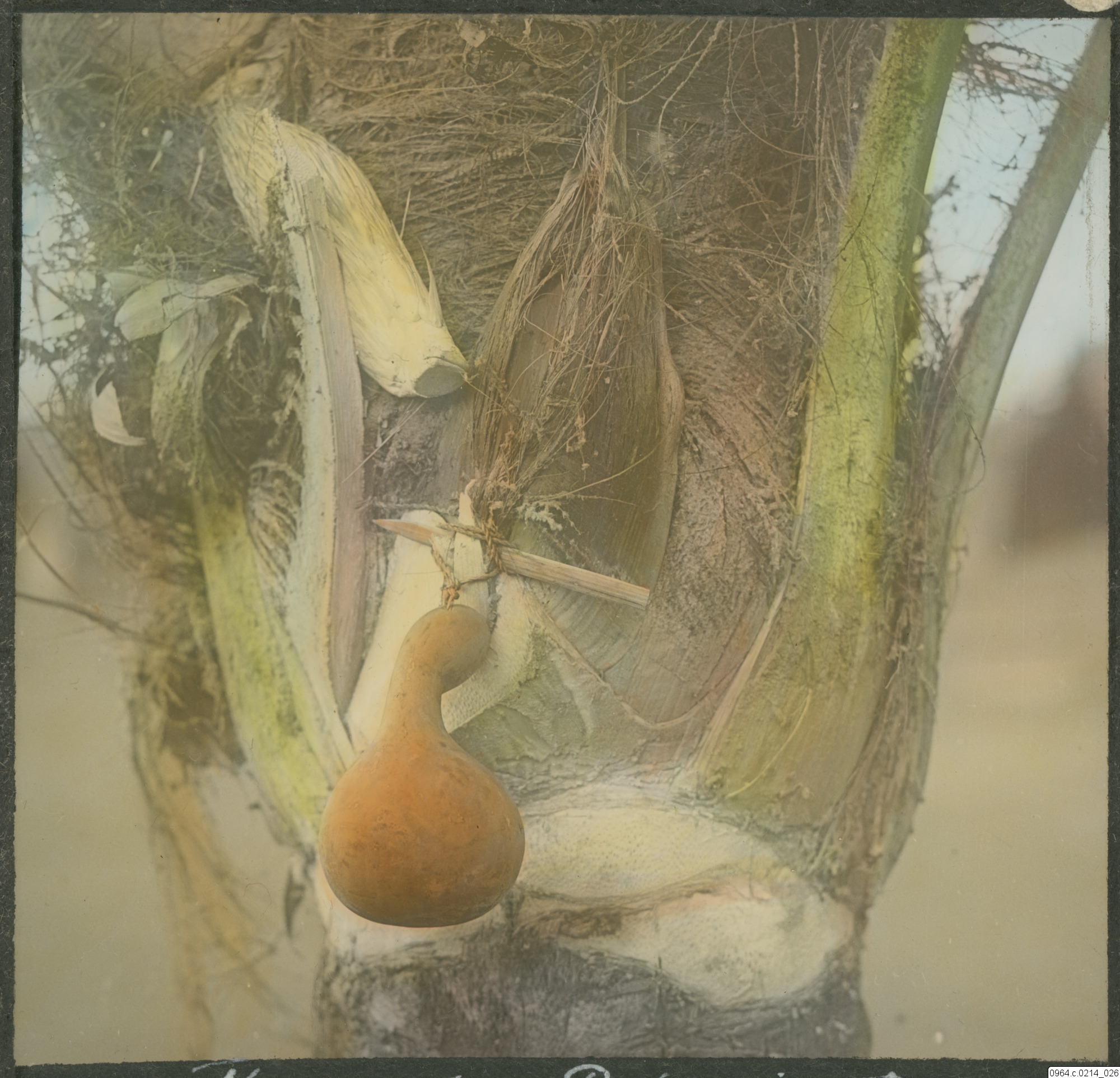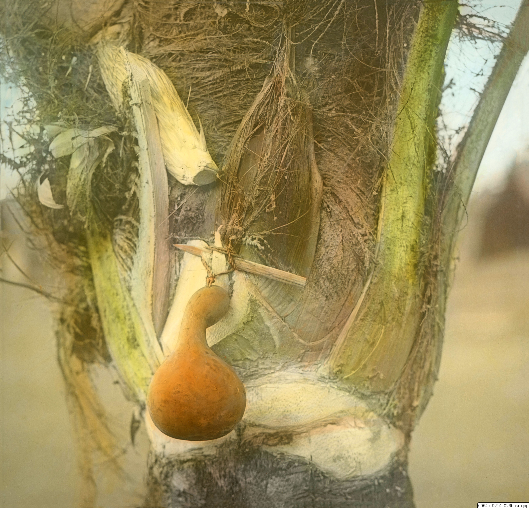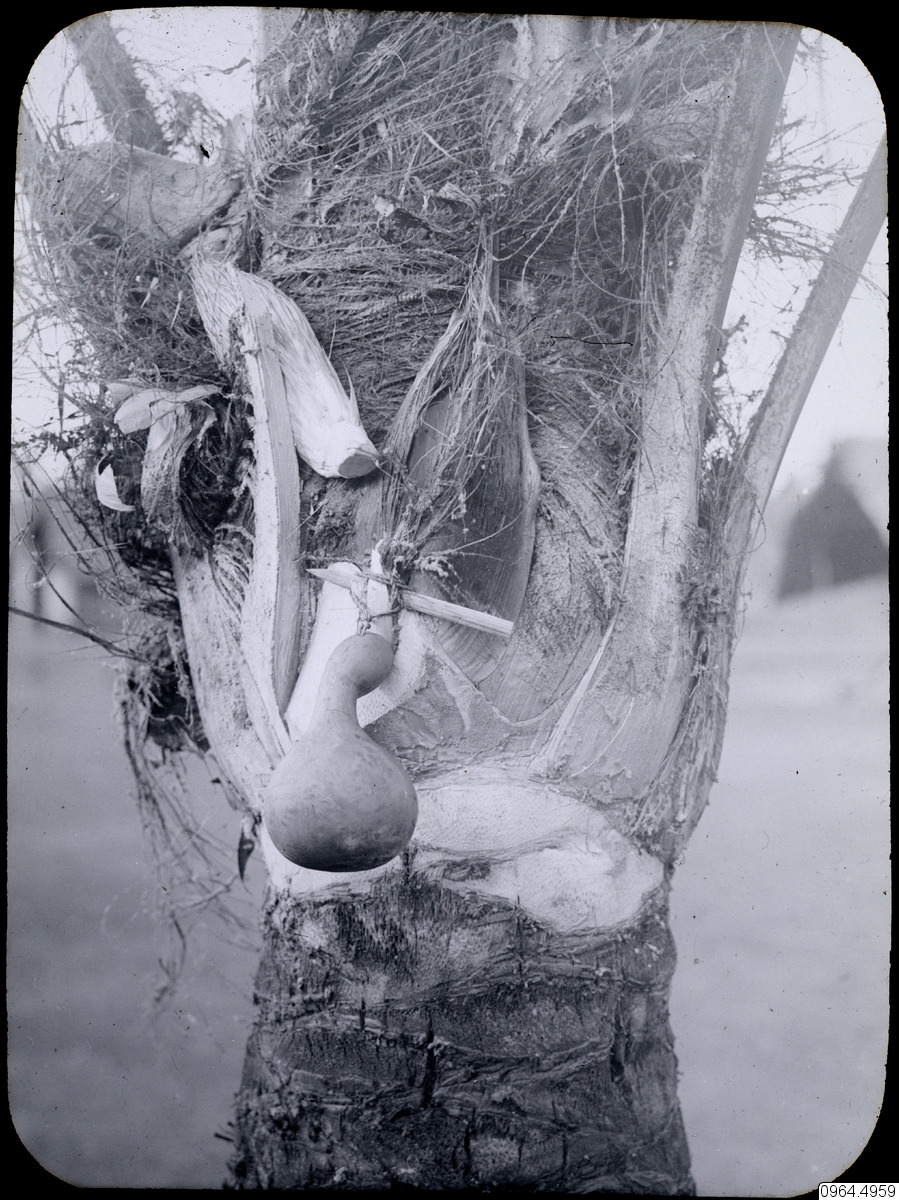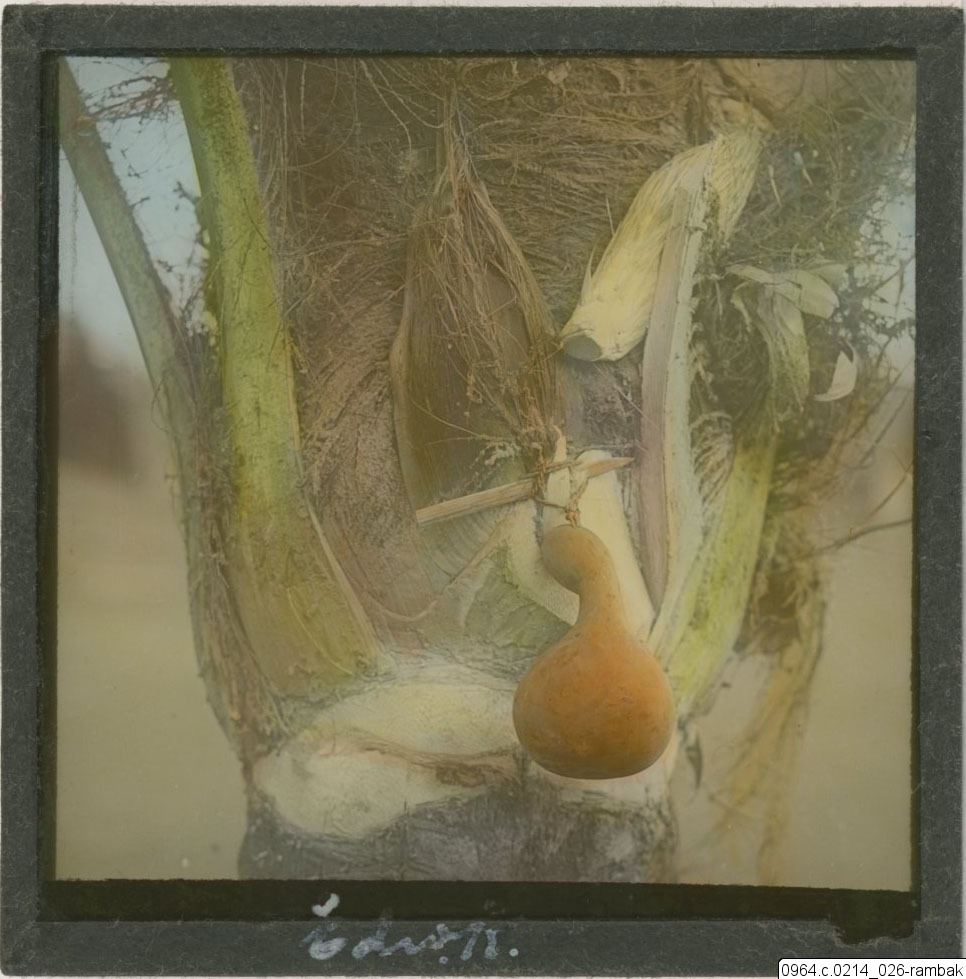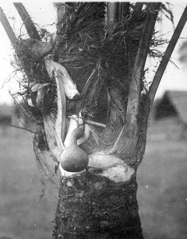 - Palm med kalebass för tappning av palmvin. JH