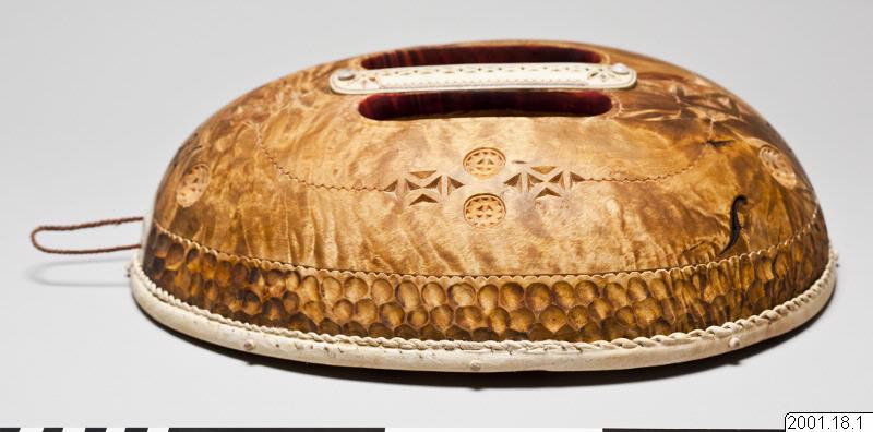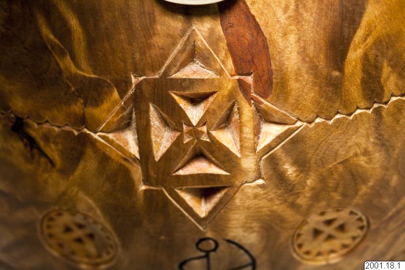 Naturens krafter har väglett mig till vrilen och gett mig löfte att få ge den nytt liv. Vassa verktyg har framhävt naturens skönhet och format en gárri, en skål. Den visar att det är en nordsamisk trumma.