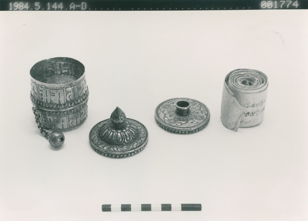 - Bönesnurra bestående av lock, botten, ask och en bön nedskriven på papper.