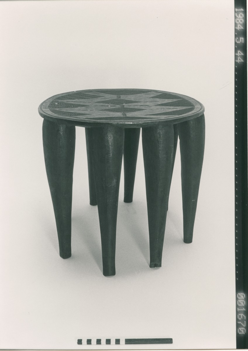 - Pall av trä, med åtta ben. Ovansidan har skuret mönster.