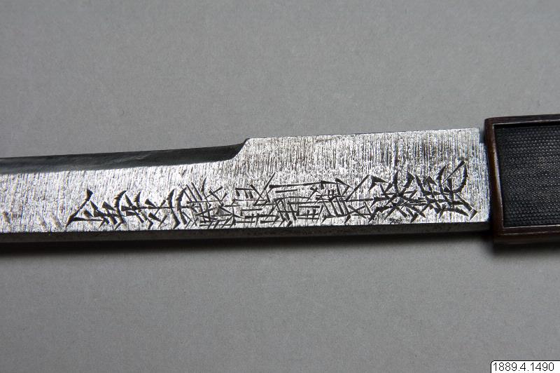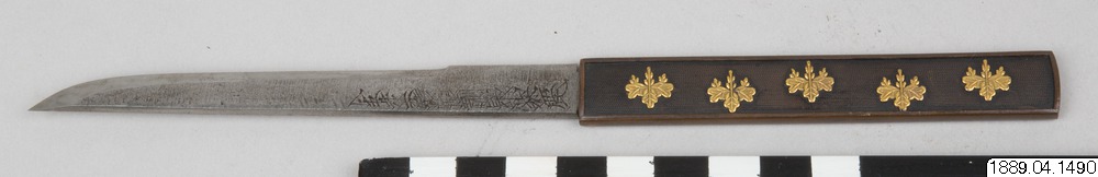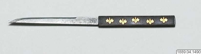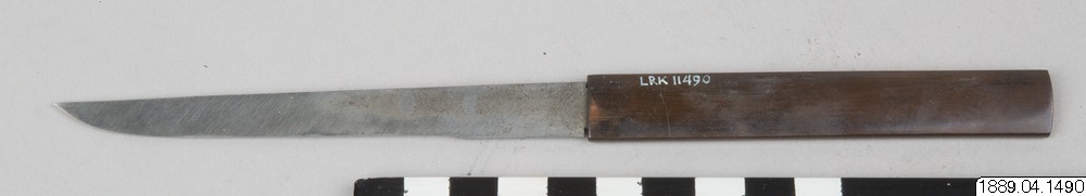 - Kniv, sammanhör med balja (1889.04.1488), gehäng (1889.04.1489) och svärd (1889.04.1487).