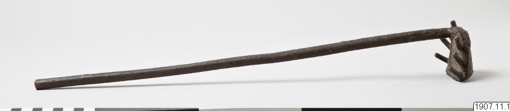 Se Raddor, Man. 1908, Nr. 65, 66 och 103. Föremålet beskrivet av G. Lindblom i Man, august,, 1926. "'Copper rod Currency' from Palabora, N. Transvaal". Utdrag från analys nr. 214480 från Kemiskt-Tekniska Byrån, 28/4 1926. "Provet består av koppar. Guld, silver, tenn och zink äro frånvarande".