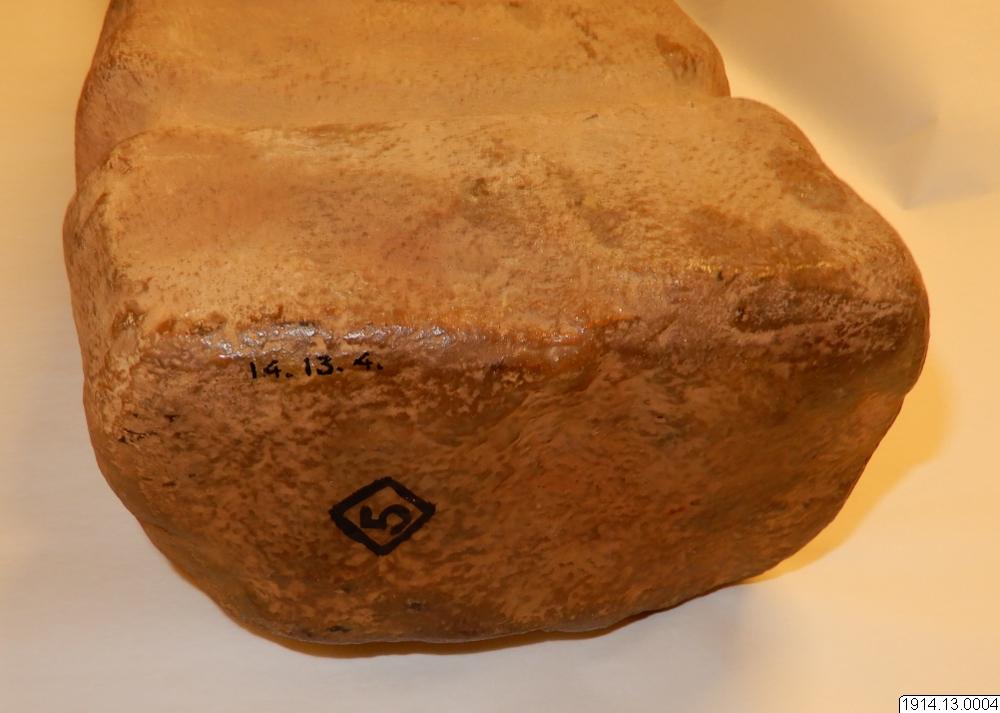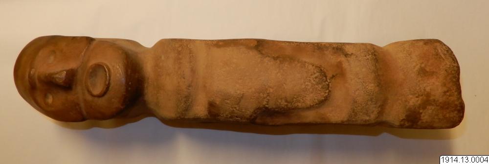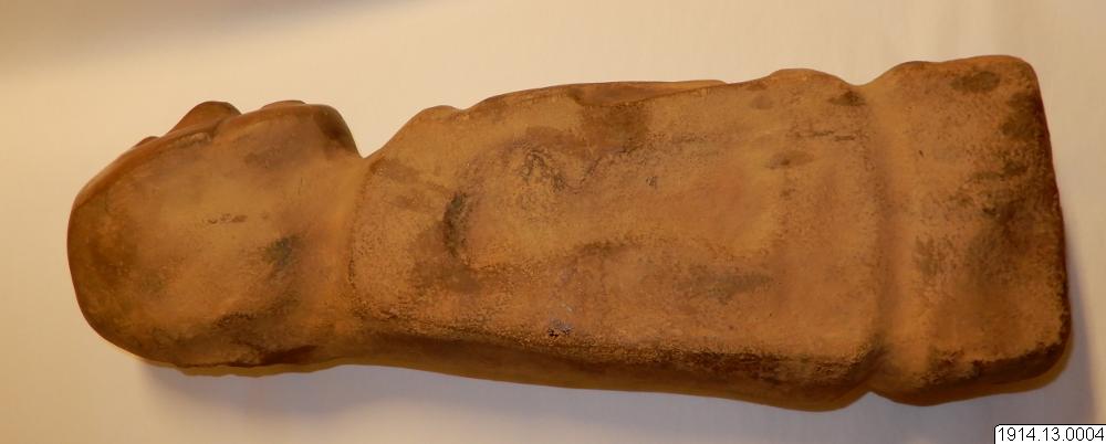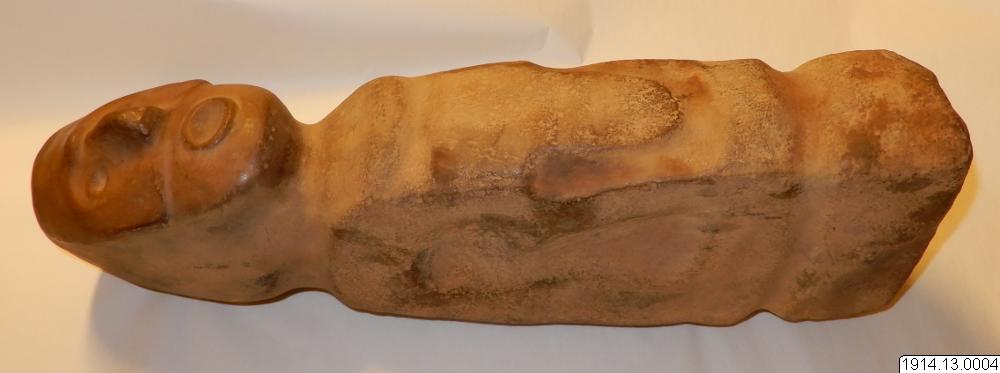 - Människofi ur. Summarisk form, plana sidor ansiktet bättre utfört, munnen öppen. (orig. nr. 6462) 52 x 18.2 x 10.1 cm.