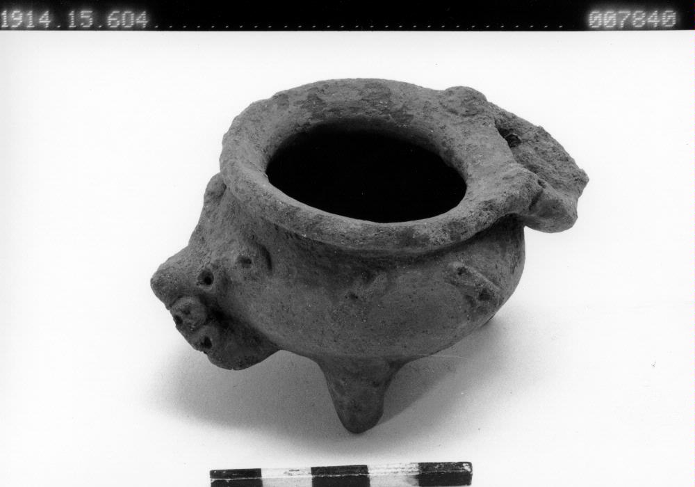 - Tripod, stil som föregåendenr:, 603; en figur, som håller om kätlkanten Och böjer sig bakåt (med ryggen nedåt), saknar tyvärr huvud. Höjd: 5 cm: Längd: 9.5'cm. Diameter: 6.7 cm. CostaRica