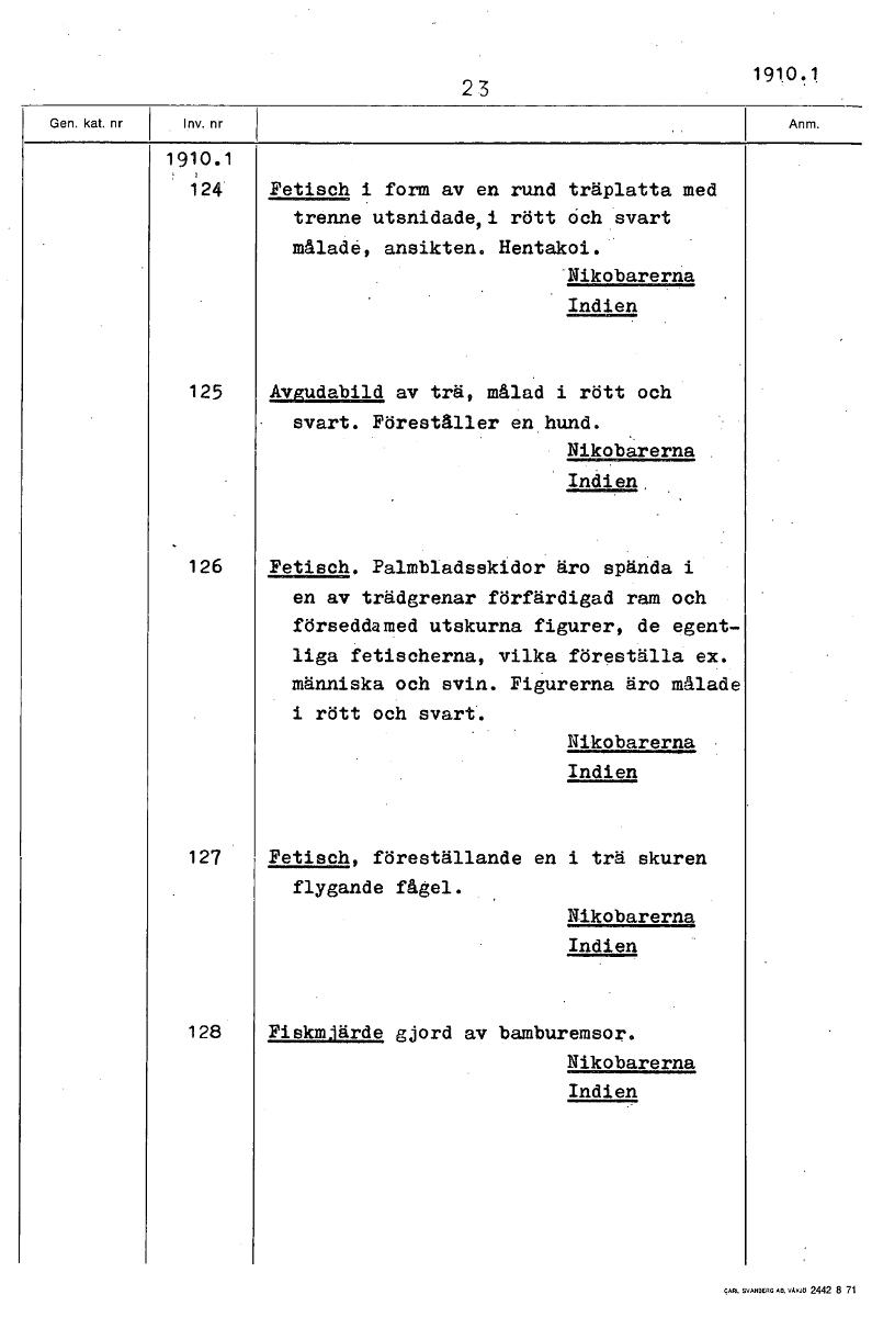 - Boksida ur Etnografiska museets generalkatalog.