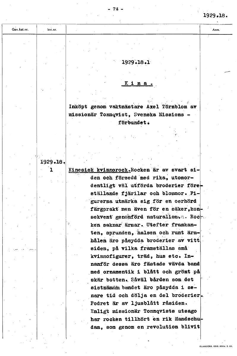 - Boksida ur Etnografiska museets generalkatalog.