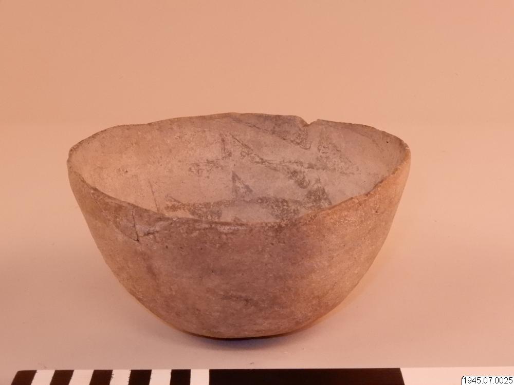 - Lerkärl. Enkel skål med svagt rundad botten och ganska raka och höga sidor. Tjockt gods. Svart dekor på gråvit botten. (generalkatalog)