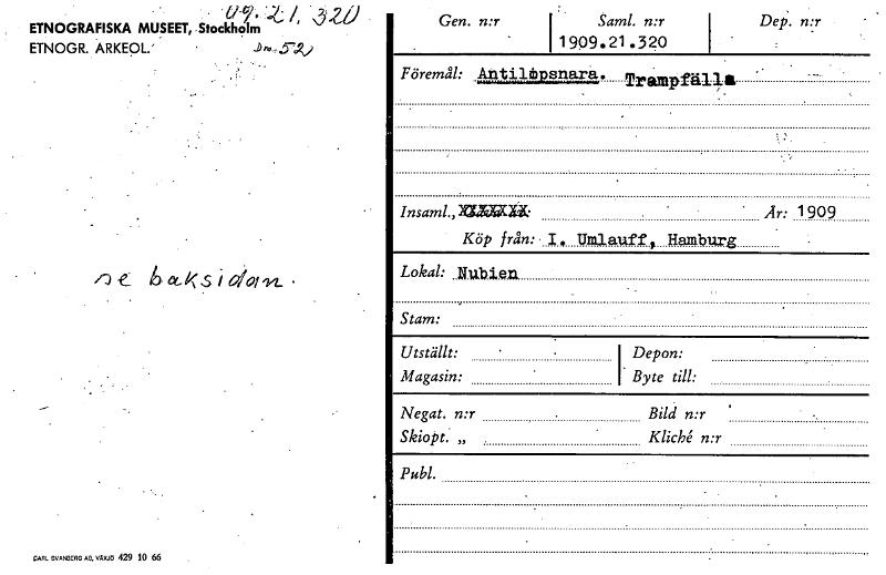 - Katalogkort från Etnografiska museets arkiv.