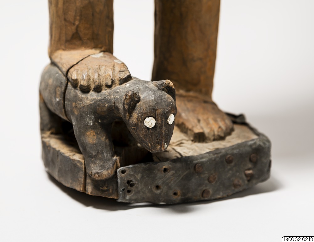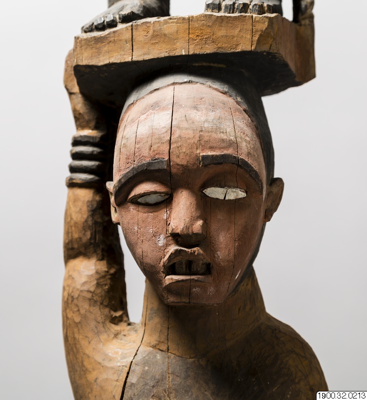 Men mycket med den här skulpturen kan jag bara spekulera kring. Håller mannen en elefantbete i handen, som symbol för en av Afrikas viktigaste handelsvaror vid tiden, eller är det en munkwisa-rot som ofta fick symbolisera hövdingars rätt att råda och döma? Andra delar av symbolspråket talar för att skulpturen har något med sällskapet Lemba att göra. I så fall är den verkligen unik. Lemba var ett politiskt och ekonomiskt nätverk och ett sällskap med starka andliga och helande inslag. Under flera hundra år av politisk och social oro i regionen, främst orsakad av den transatlantiska slavhandeln, var Lemba ett viktigt samhällskitt och en rituell praktik som även följde med de afrikanska slavarna till den nya världen och existerar där än idag, till exempel i Brasilien (Candomblé Angola) och Haiti (Voudou Petro). Men inga skulpturer av denna storlek förknippade med Lemba verkar ha hamnat i några museisamlingar, så är detta bara intendentens önsketänkande? Varför bär den avbildade mannen europeiska polisonger? Och vem är donatorn? Är det någon av de brutala soldaterna Pagels, Möller eller Gleerup, som deltog i Kung Leopold II:s erövring och skövling av Kongo? Eller handelsmannen Theorin som verkade på den lilla ön Elobey utanför Ekvatorialguineas kust som föreståndare på ett engelskt faktori?"